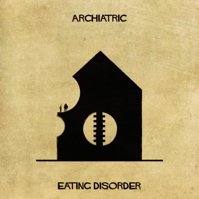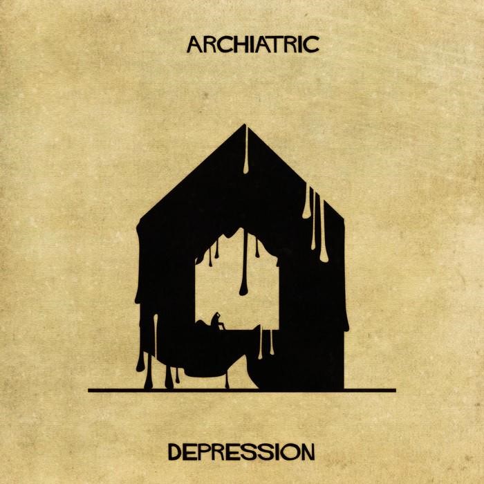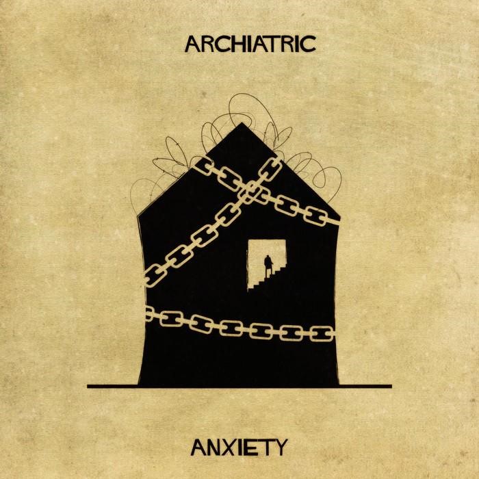 Each illustration in “Archiatric” represents a specific mental health disorder, such as depression, anxiety, bipolar disorder and others, using abstract buildings to symbolically represent the essence of these conditions. An example of this would be a building that appears fragmented, unbalanced, or complicated like a maze, symbolizing the internal struggles associated with a certain mental state.